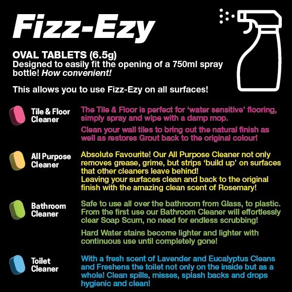 Imagine this: one Fizz-Ezy tablet transforms into multiple litres of powerful cleaning solution. No more spills, no more measuring, just pure cleaning efficiency.