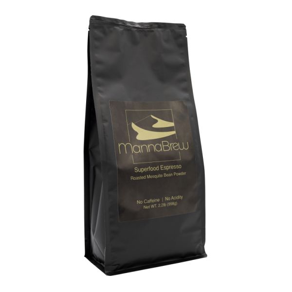 You can now enjoy espresso with a healthy twist. MannaBrew is not just another coffee brand trying to convince you that our coffee is the best, because it is NOT COFFEE. MannaBrew is, in fact, made from a superfood known as Mesquite (Prosopis glandulosa). The seedpods of the hardy Mesquite tree are slow roasted to enhance the rich, smooth, caramel, nutty flavors that can be enjoyed like any other coffee, giving you lots of energy but without the side effects of caffeine.